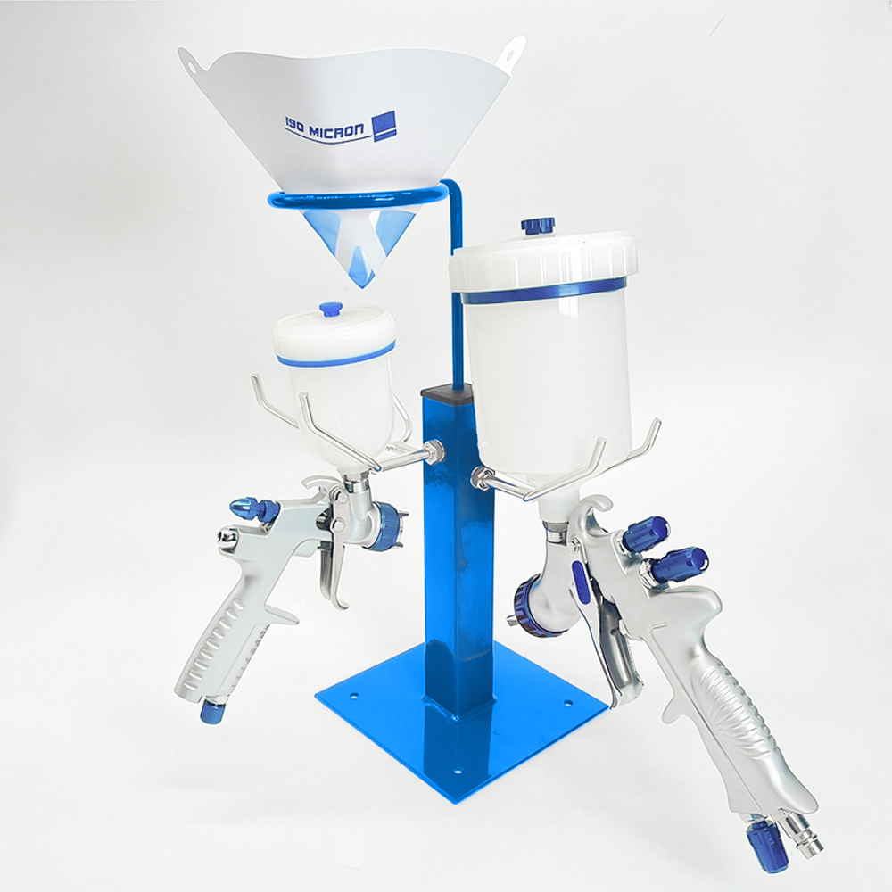 - Ovaj držač drži pištolj za farbanje spremnim za upotrebu i omogućava lako procedjivanje boje direktno u čašicu pištolja