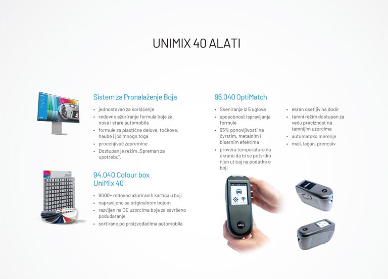 "UniMix 40 je vrhunski sistem mešanja boje koji garantuje besprekoran završni izgled za komercijalna vozila, oldtajmere i motocikle.